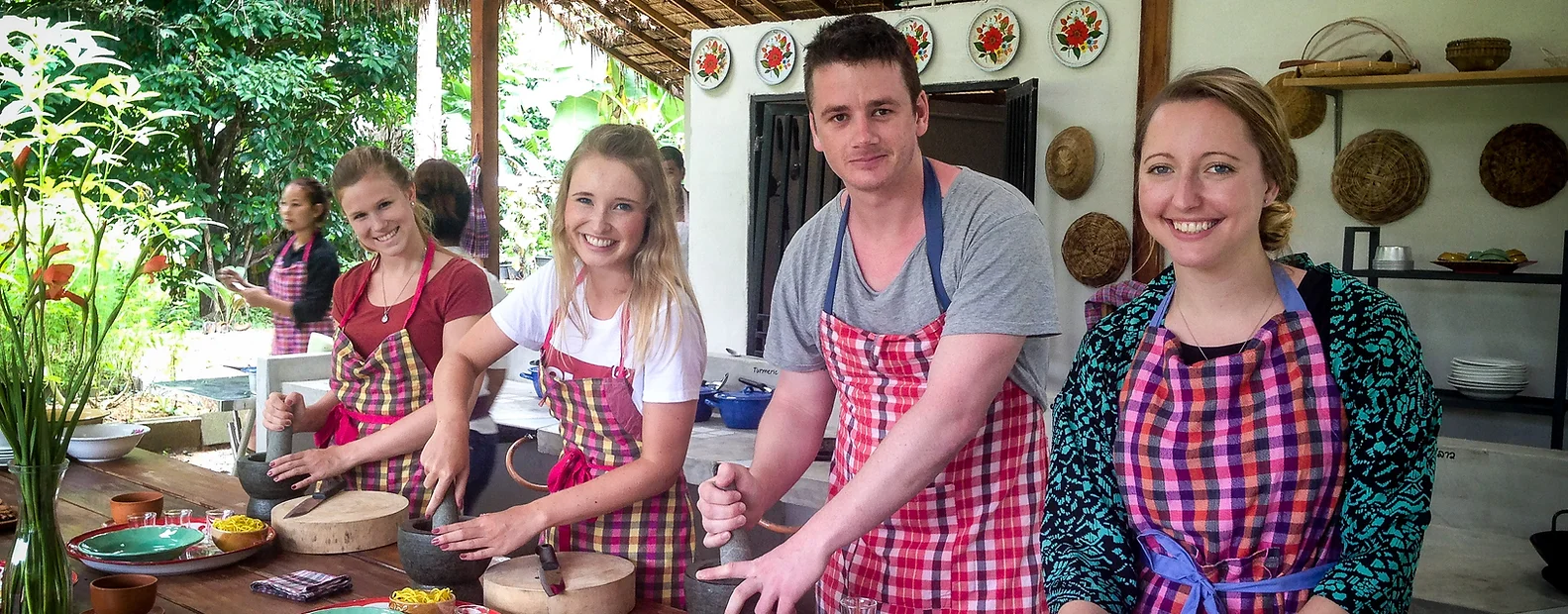 קורס בישול בשני סבבים מדי יום. הקורס כולל סיור בשוק המקומי, בחירת המצרכים והתבלינים המיוחדים, למידה כיצד להכין 5 מנות אותנטיות מתוך תפריט עשיר של 33 מנות וכמובן לאכול את המנות!